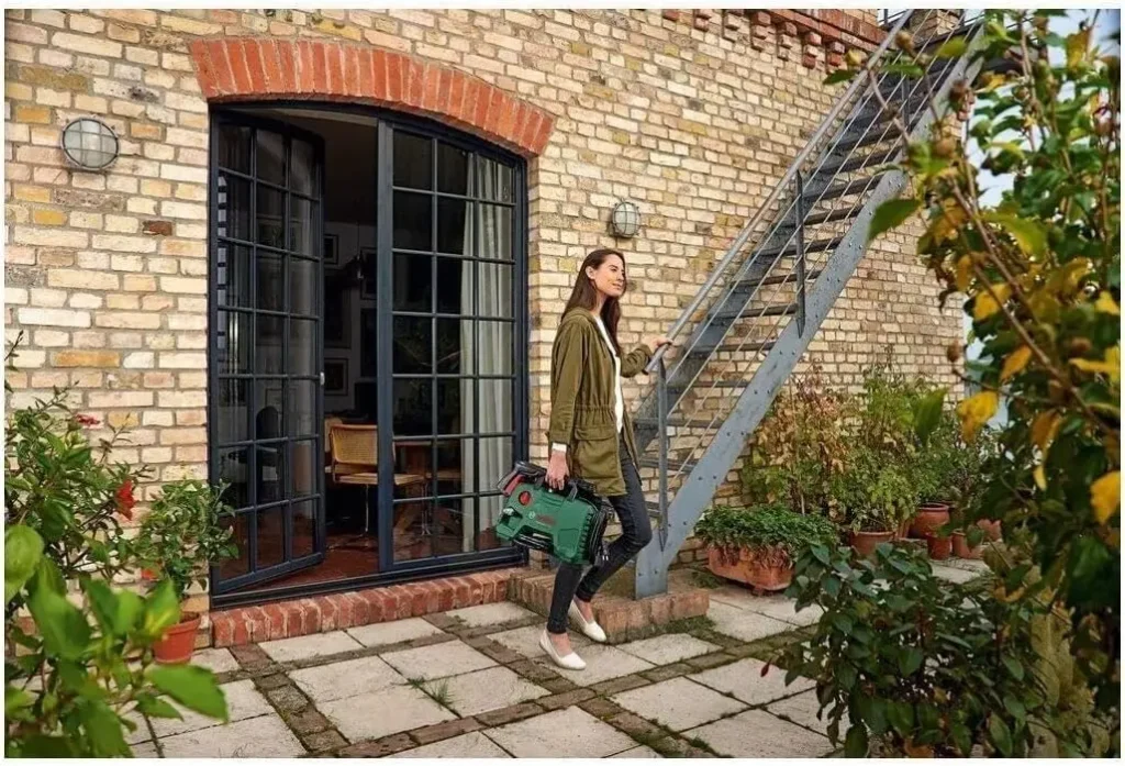 Una de las primeras cosas que llama la atención sobre la Bosch EasyAquatak 120 es su diseño. Compacta y ligera, con apenas 3,4 kg de peso, esta hidrolimpiadora es muy fácil de transportar y almacenar. Gracias a su tamaño reducido, no ocupa mucho espacio, lo que la convierte en una excelente opción para hogares pequeños o con poco almacenamiento.