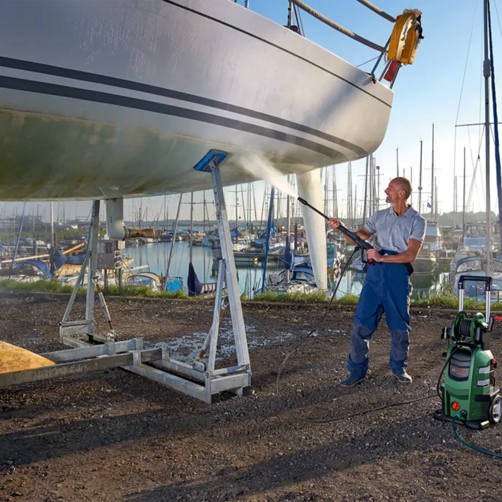 La Hidrolimpiadora Bosch AdvancedAquatak 160 es ideal para la limpieza de superficies grandes y difíciles, como patios, terrazas, fachadas, coches, bicicletas y muebles de jardín. Su alta presión permite eliminar suciedad incrustada con facilidad.