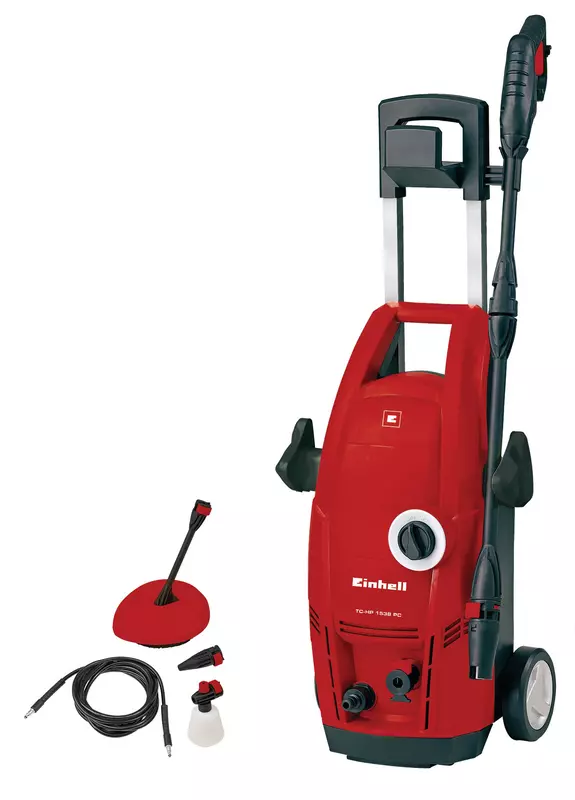 La Hidrolimpiadora Einhell TC-HP 1538 es una máquina de limpieza a alta presión diseñada para tareas domésticas. Su principal objetivo es facilitar la eliminación de suciedad difícil en todo tipo de superficies exteriores: vehículos, terrazas, herramientas de jardín, bicicletas, fachadas y más.