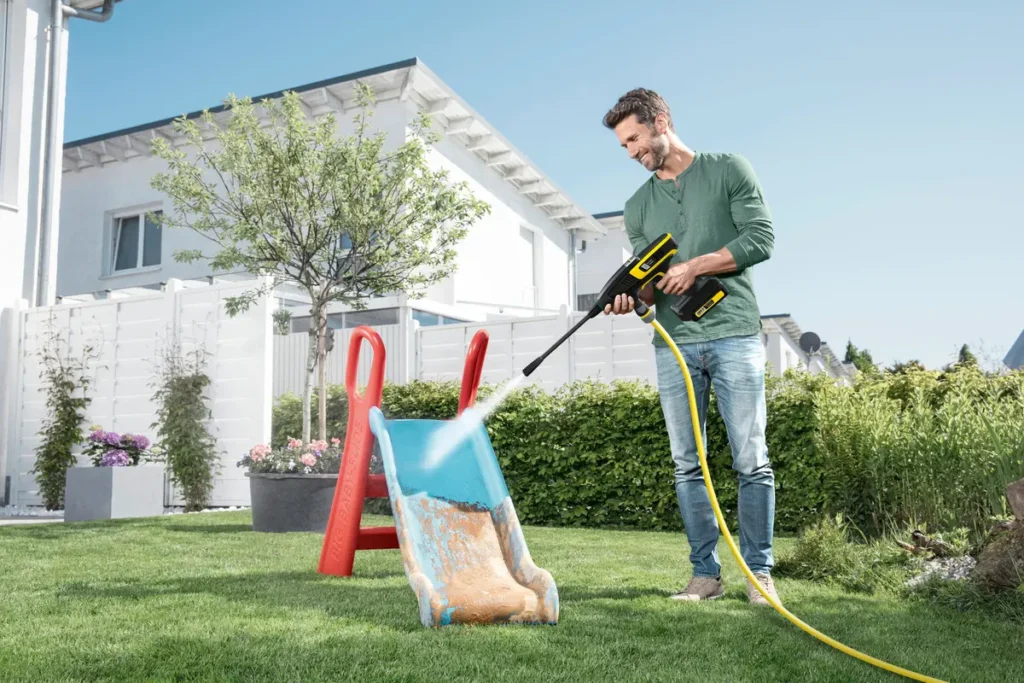 - Presión media, eficaz y adaptable : Funciona con una presión moderada pero efectiva y cuenta con diferentes boquillas para adaptarse a múltiples tareas.