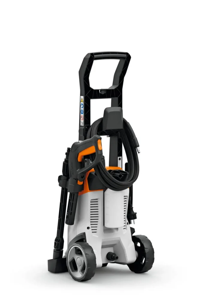 La Stihl RE 90 combina funcionalidad y diseño inteligente. Con un peso de apenas 9 kg, esta herramienta es fácil de transportar gracias a su asa ergonómica y sus ruedas robustas. Una de las características más útiles es el almacenamiento integrado para la manguera y accesorios, evitando desorden y pérdida de piezas.