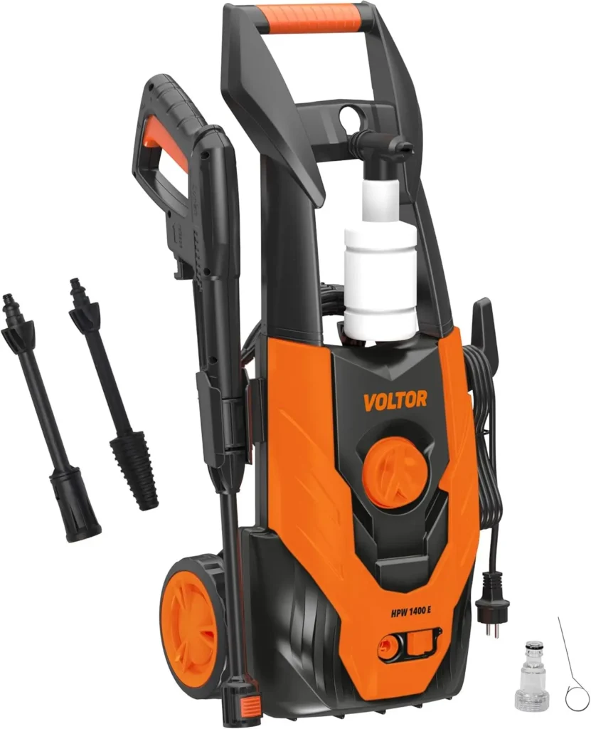 - Potencia adecuada para uso doméstico: Con un motor de 1,400 W, la Voltor HPW1400E ofrece una presión de hasta 110 bar, que resulta adecuada para la limpieza de superficies exteriores, vehículos y jardines sin resultar excesivamente fuerte, lo cual ayuda a evitar posibles daños en superficies delicadas.
